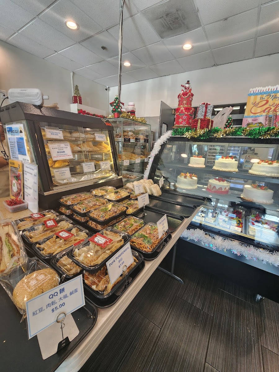 The bakery's atmosphere feels cozy and functional, typical of a neighborhood spot where customers often stop by to pick up something to-go. The display cases are filled with an array of pastries that showcase a mix of nostalgia and innovation—radish pies and wife cakes sit alongside French-style scones and custom cakes. The presence of bento boxes, featuring fried chicken or pork with rice and a hard-boiled egg, adds a convenient lunchtime dimension that draws in workers and families nearby craving quick comfort food beyond standard fast options.