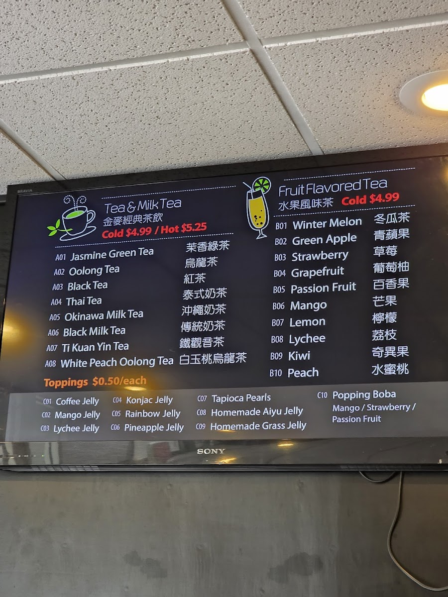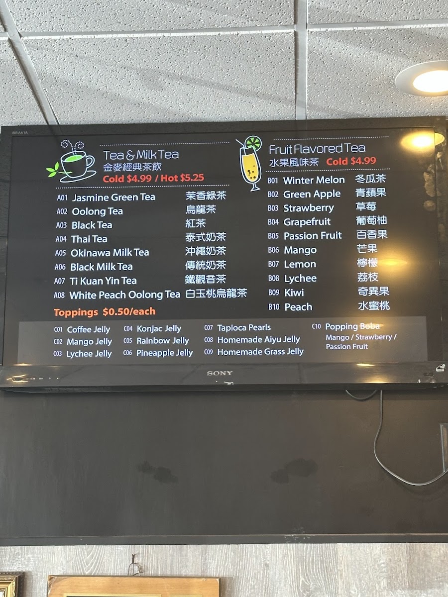Drinks: Beverage choices include teas such as green tea latte, milk tea, and green milk tea, offered alongside the bakery and bento items for a complete meal experience.
