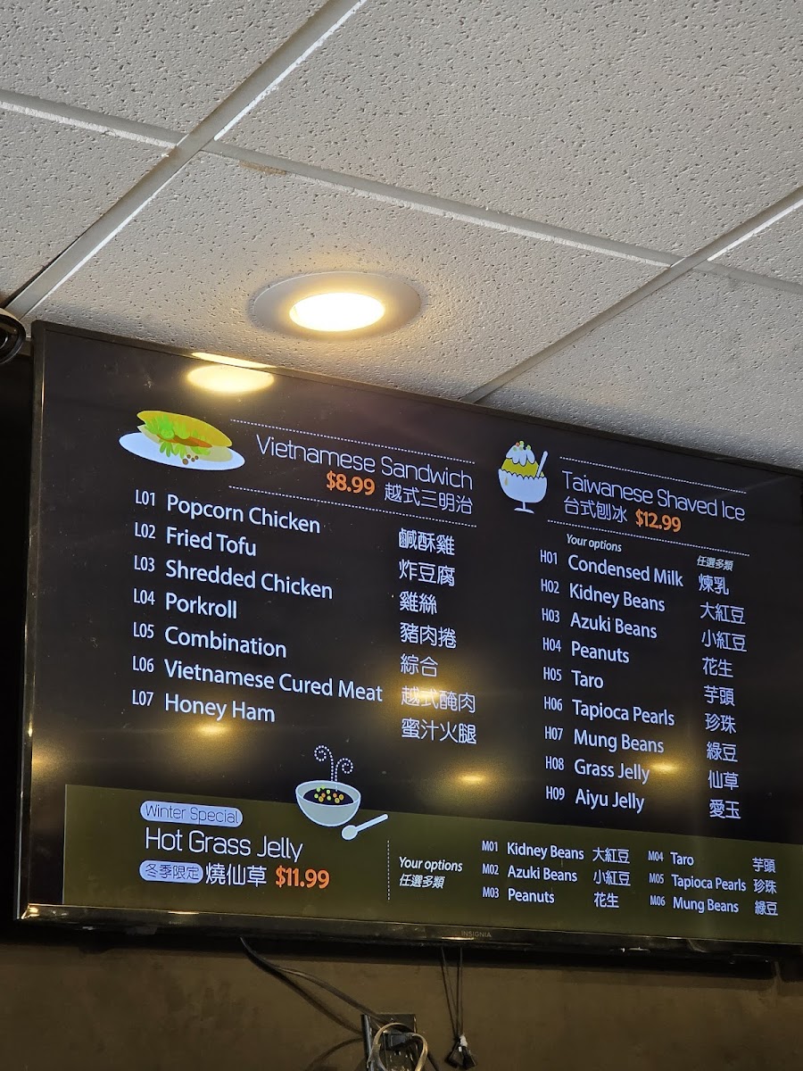 Bakery Items: This section features a range of freshly baked pastries and breads such as classic Taiwanese style breads, scones, wife cake, black sesame pastry, and specialty items like black pepper pork pastry, curry beef pastry, and 車輪餅. Custom cakes are also available for special occasions.